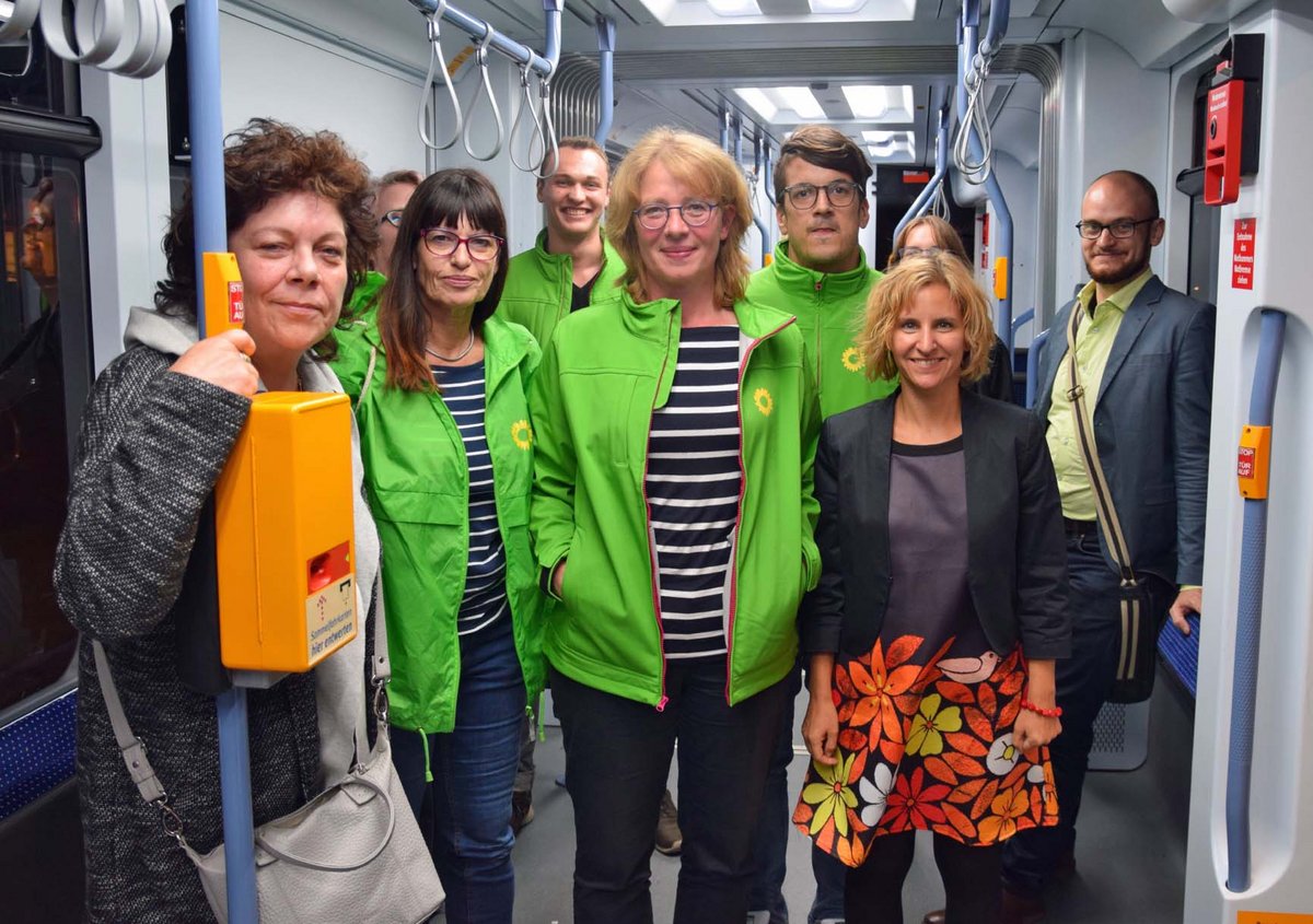Jutta Blatzheim-Roegler, Sprecherin für Verkehr der GRÜNEN Fraktion Rheinland-Pfalz, unterstützte die GRÜNE Bundestagsabgeordnete und Spitzenkandidatin zur Bundestagswahl 2017 Tabea Rößner auf der Fahrt mit der Mainzelbahn. Unter dem Motto "Elektrisch in die Zukunft" ging es mit der Straßenbahn vom Bismarckplatz zum Lerchenberg. Die Teilnehmerinnen und Teilnehmer waren dazu eingeladen mit Tabea Rößner und Katrin Eder, Verkehrsdezernentin von Mainz über Verkehr, Verkehrswende und die Zukunft der Mobilität zu sprechen. Die Veranstaltung wurde vom Kreisverband GRÜNE Mainz organisiert.